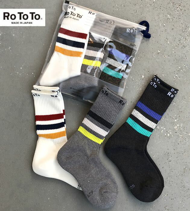 ロトト秋冬新作 スリーライン ソックス 3足セットROTOTO 3LINE SOCKS 日本製 靴下 メイドインジャパン