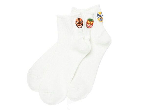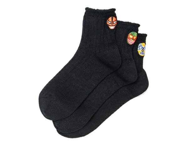 2点以上お買い上げで送料無料!【ROTOTO】BRU ROTO 3 SOCKS “ルチャ”靴下 メンズ 3枚セット 3足 セット ワンポイント ブルーナボイン コラボ 赤 レッド 黒 ブラック 白 ホワイト ソックス リネン コットン