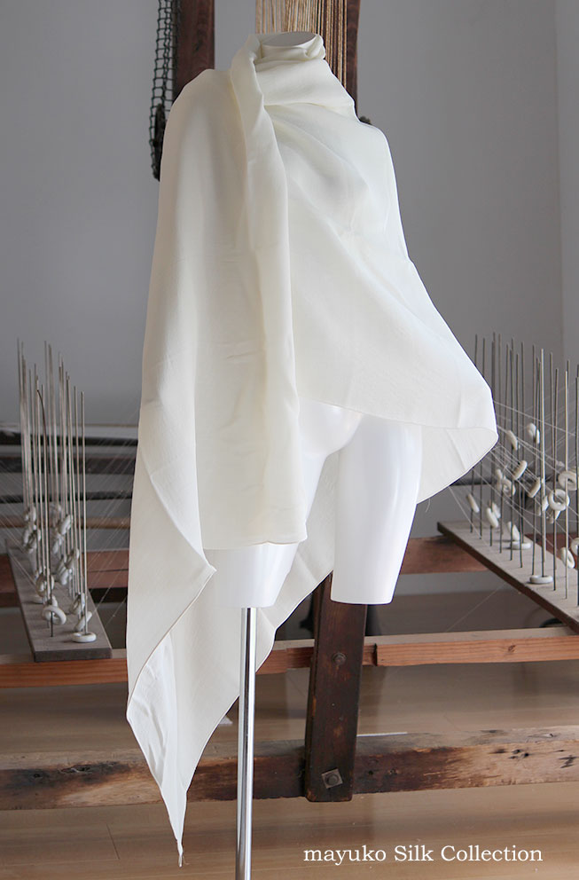 バサッと羽織れる大判130cm×190cmサイズシルクウール生成り/白スカーフ/マフラー/ショール用/Silk50% Wool50%生成り色/14匁 しっとり重め秋冬向き生地/ 丹後織元シルク工場製/再精練・煮沸湯のし済/草木染めできます与謝野町/臼井織物/日本製