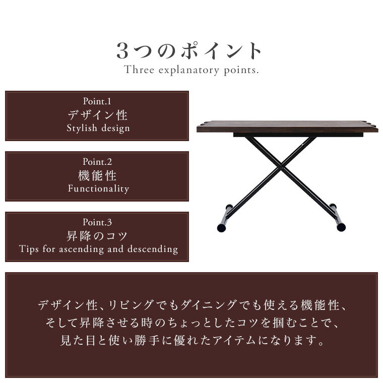 高さ25-72cmまで昇降出来るテーブルは床に座って使う時もLDで使う時も対応出来る高さで、どんな場面でも使用できます。