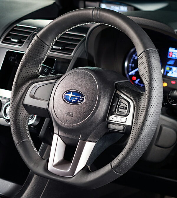 【 スバル レガシィB4 型式 BN# 年式 H26/10-H29/9 アプライドモデル:A-C型 ※ステアリングヒーター装備車未確認 】 DAMD ダムド 【 純正エアバック対応 ステアリング 】≪ SS362-RX ≫≪ ブラックレザー&グレーステッチ仕様 ≫