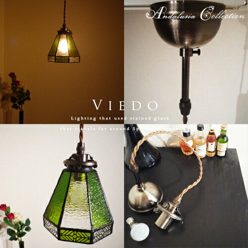ペンダントライト LED対応 レトロ グリーン ステンドグラス 1灯 ダイニング用 食卓用 ランプ アンティーク ナチュラル ノスタルジック インテリア照明 玄関 廊下 階段 トイレ サニタリー パントリー レール(要プラグ)[VIEDO:ヴィエド][ANDALUCIA:アンダルシア](CP4