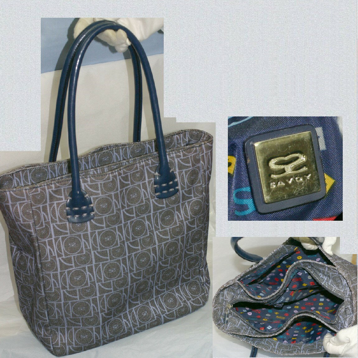 【中古】本物綺麗SAVOYサヴォイお洒落な模様34x28x13cm丈夫なキャンバストート ○C11-62