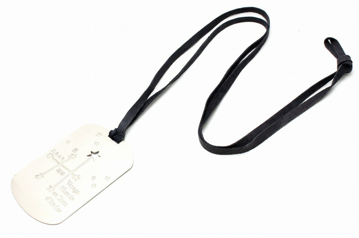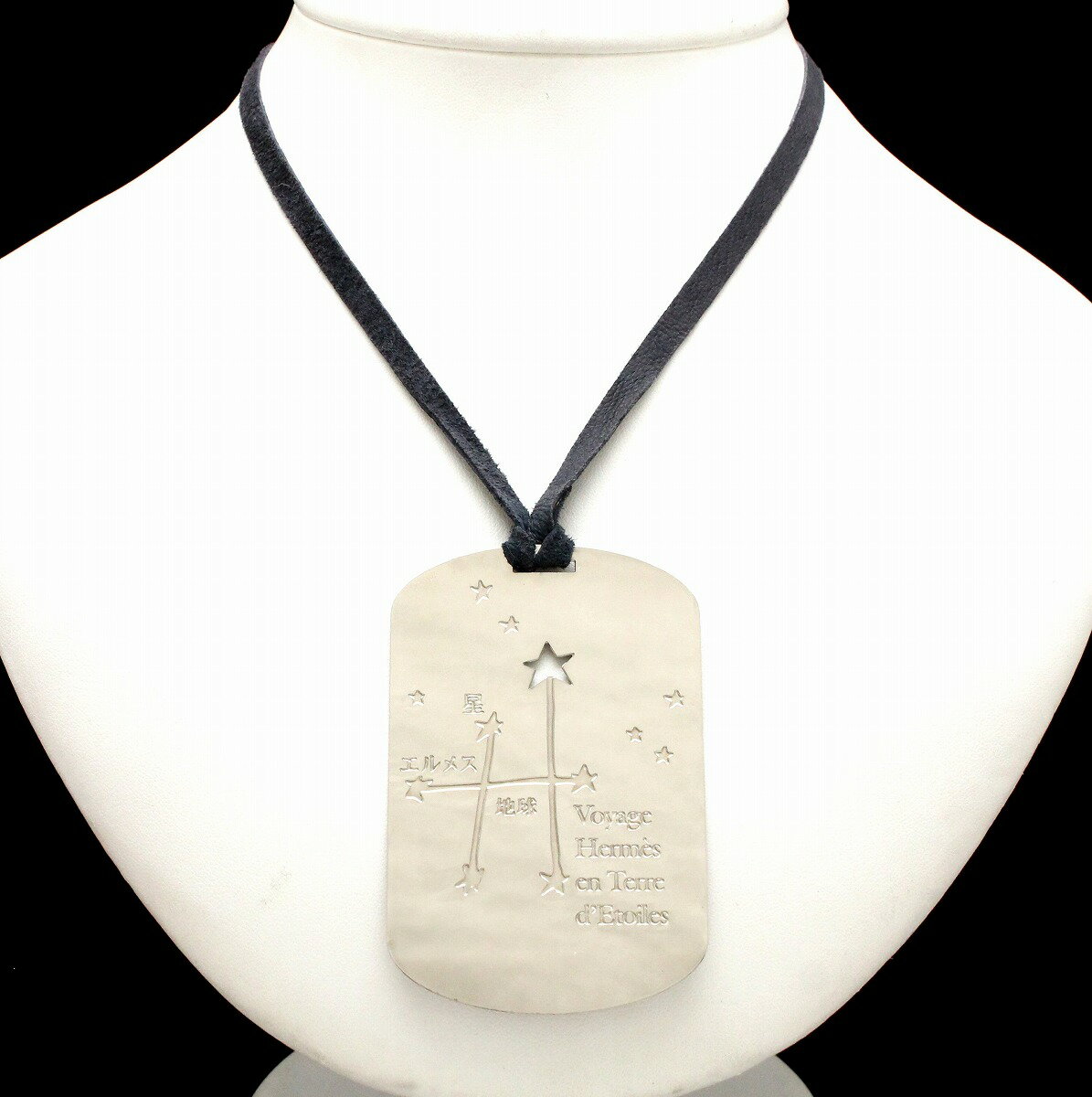HERMES エルメス 星を巡る旅展 限定品 ネックレス タグ レザー メタル シルバーカラー ネイビー 紺 【中古】【Blumin/森田質店】【質屋出品】【u】